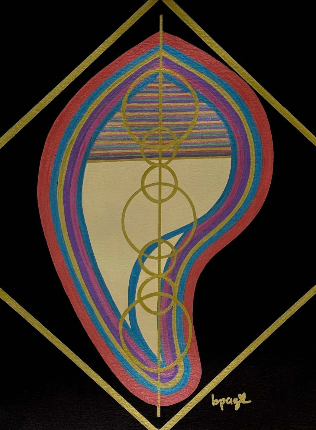This series presents a condensed version of the individuation process described by C.G. Jung. In it, we observe a sequence of patterns, rhythms, motifs, and numbers as we become aware of the creative process of psychological or spiritual development, which evolves in time and space. Through physical experience—through the body—the human soul evolves; the innate potential of each human being emerges from the interactions and difficulties of everyday life. It seems that the next step in evolution points not to another level of biological growth, but to spiritual development, to the development of the soul. As the individual discovers and confronts their origins and inner dynamics, the unity of opposing or compensating forces emerges, healing the gap between matter and spirit, the individual and the collective.